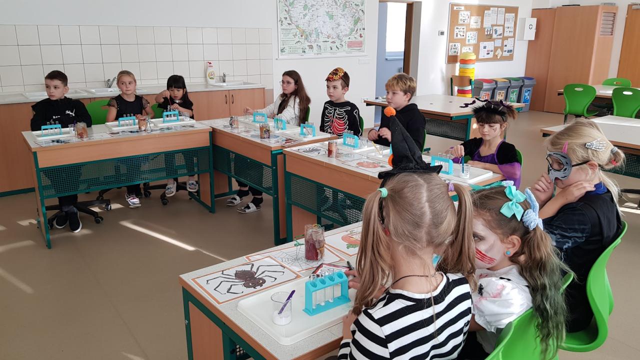 Žáci z 1. až 4. třídy si užili stále oblíbenější svátek Halloween. V družstvech, která vznikla promícháním dětí napříč třídami, si spojili výuku anglického jazyka s prožitkem při plnění pestrých úkolů.