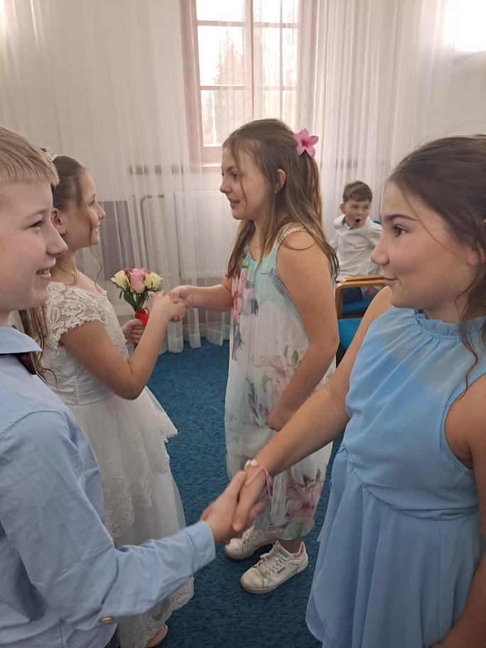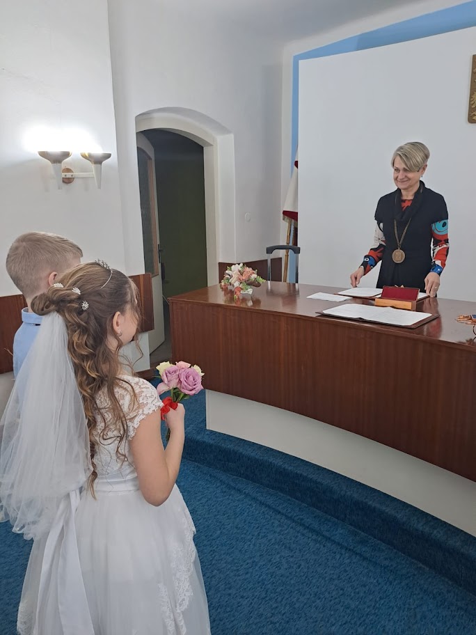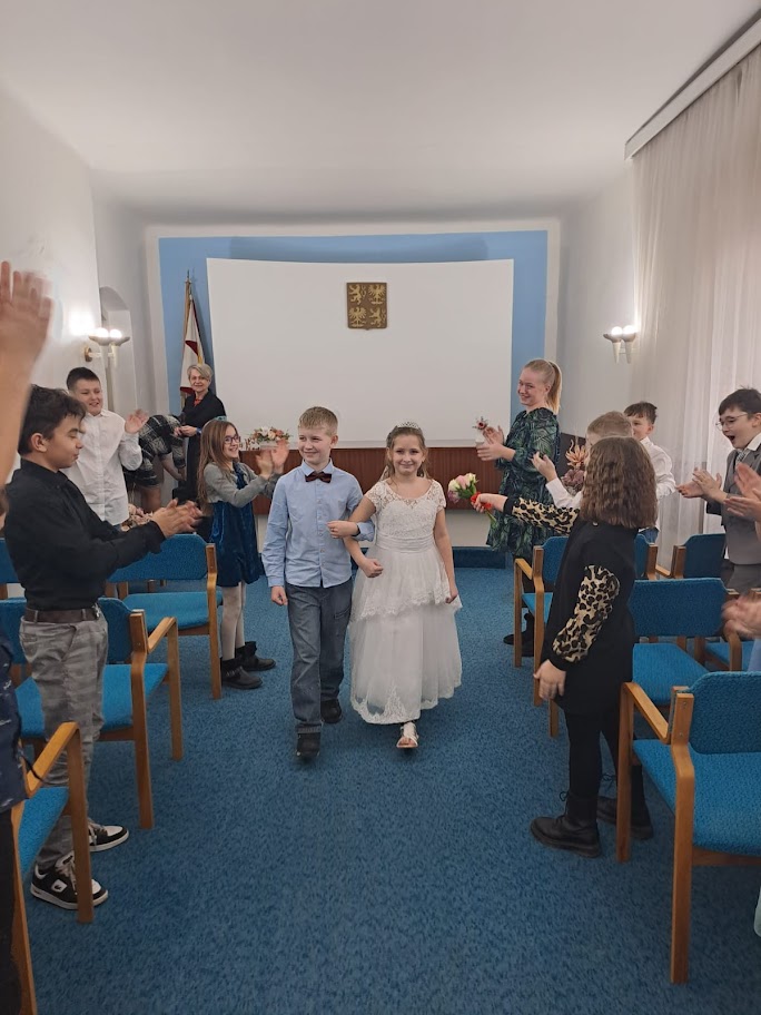 Ve 4. ročníku si žáci prožili svatební den. Vyzkoušeli si, jaké to jednoho dne může být, až se stanou dospělými občany. Před svatebním obřadem si děti popovídaly i s místostarostou obce, kterému kladly své otázky.