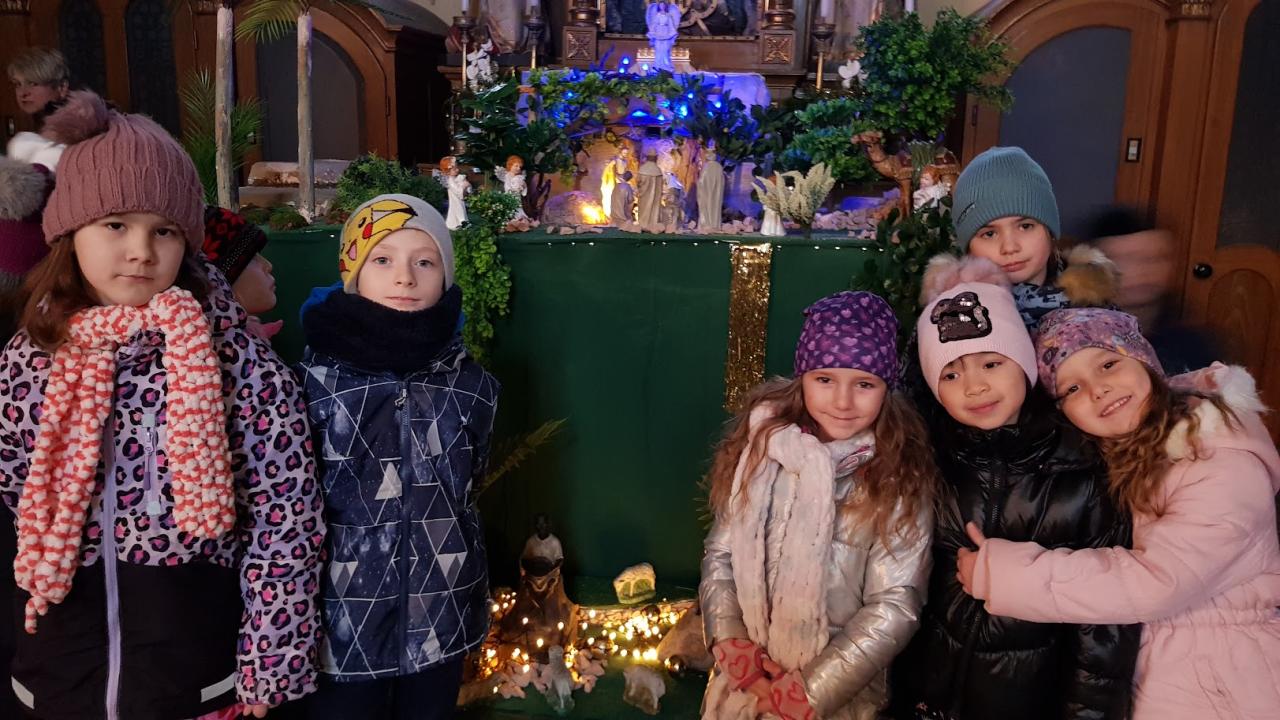 Přijali jsme pozvání na prohlídku nového betlému v místním kostele, kterou jsme spojili se zpíváním koled a poslechem varhan.